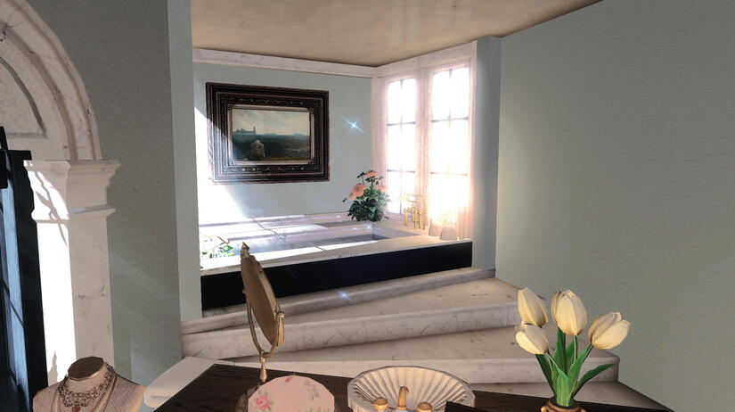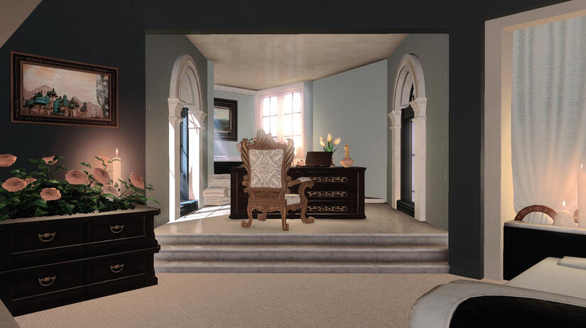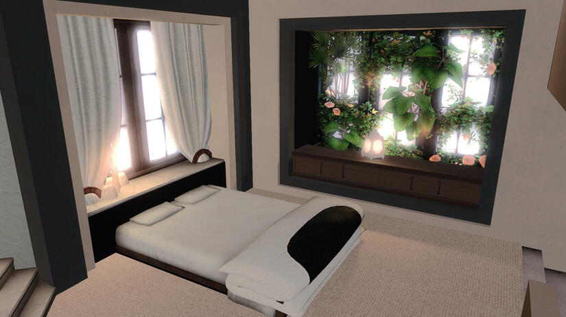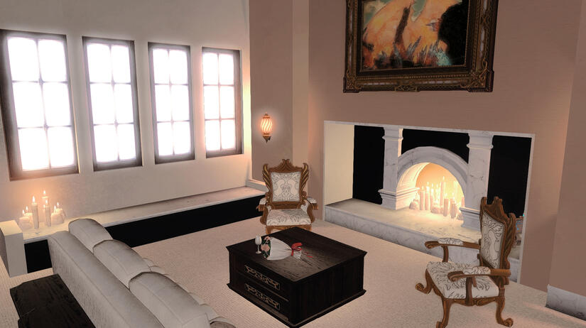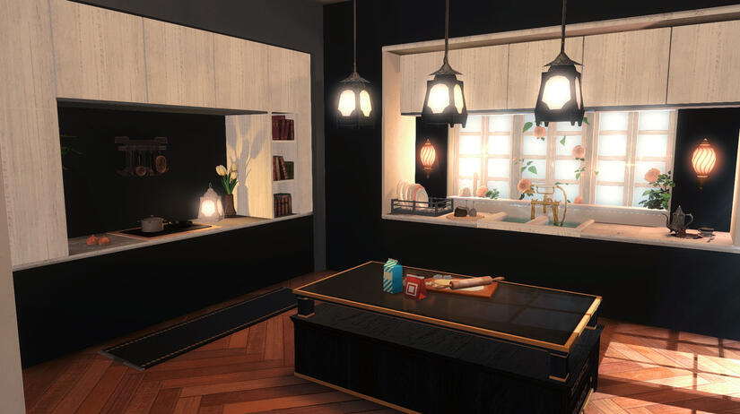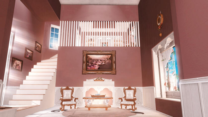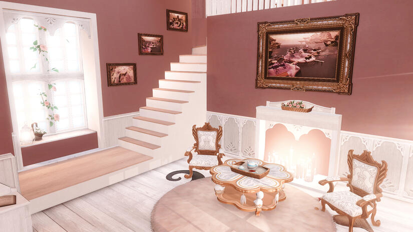 Lamia | Mist Ward 1, Plot 13I designed this home for a dear friend of mine who asked me to create a place that pulled from my whims and fancies. The result was an elegant loft with luxurious gold finishes, balanced with shades of warm lavender to add some cute charm. I was inspired to create a home that felt modern and upscale but also relaxing and cozy.